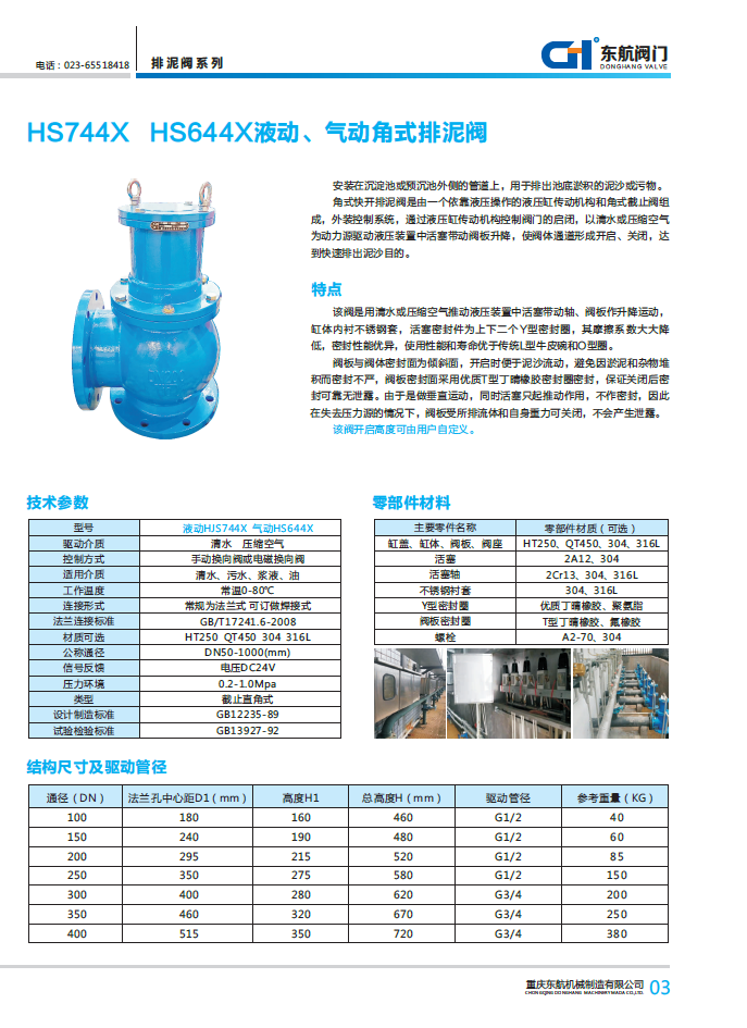閥門特點: 液壓缸內部采用寸氟塑封處理,防銹防腐; 活塞密封件采用優質丁晴耐磨橡膠Y型圈結構,運動快速,張馳有力,密封性佳,長久使用不怕漏水串缸; 閥桿采用優質不銹鋼材質,表面光潔度達到R0.8; 閥桿與閥體位密封采用3道進口Y型圈密封,密封性能優異,使用壽命超長; 閥座部份采用Q235鋼+EPDM全包覆橡膠結構閥座,防腐耐磨,長久耐用; 閥座開啟高度高,實現高開度,大排泥流量,對淤泥沉積不敏感; 閥體材質為 QT450,表面處理為環氧樹脂噴涂,長久使用亮麗如新; 此閥結構合理,使用壽命長,根據客戶現場反饋有使用壽命達十年以上,零配件更換方便快捷,易損密封部件長期有售,且價格合理! ![]() ![]() |