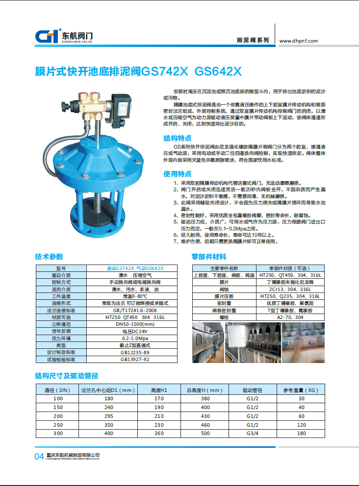 本閥門特點: 閥體材質采用QT450球墨鑄鐵材質,整體鑄造,表面處理為環氧樹脂噴涂,長久使用亮麗如新; 閥桿材質采用不銹鋼,表面光潔度達到R0.8;并且與閥體配合部位的密封,采用3道進口y型圈配合使用,密封性能優良,不易磨損漏水; 隔膜片采用尼龍+尼龍強化橡膠,并且隔膜片與閥體的配合,采用最新優化設計,不易使隔膜片膨脹破裂,使用壽命超長; 閥座采用Q235鋼+全包覆耐磨丁腈橡膠設計,防腐耐用; 閥座部位采用彈簧輔助密封,即使隔膜片老化破裂也能,保證閥門密封自如,不會導致水池泄漏; 此閥結構合理,使用壽命長,根據客戶現場反饋有使用壽命達十年以上,零配件更換方便快捷,易損密封部件長期有售,且價格合理! ![]() |